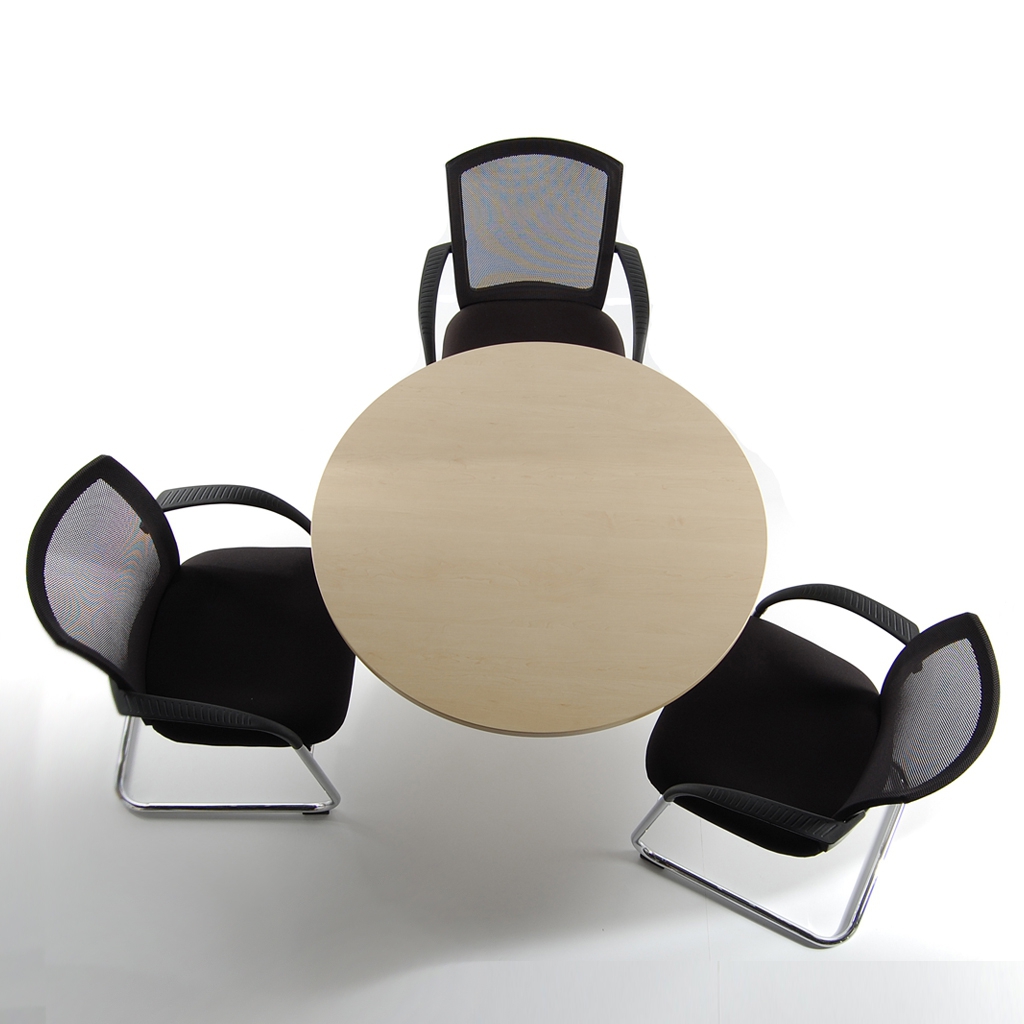 Ein Besprechungstisch mit Säulenfuß für den vielseitigen Einsatz im Profi-Büro. Passende Rollcontainer, Aktenschränke, Regale und Sideboards stehen ebenfalls zur Verfügung.
